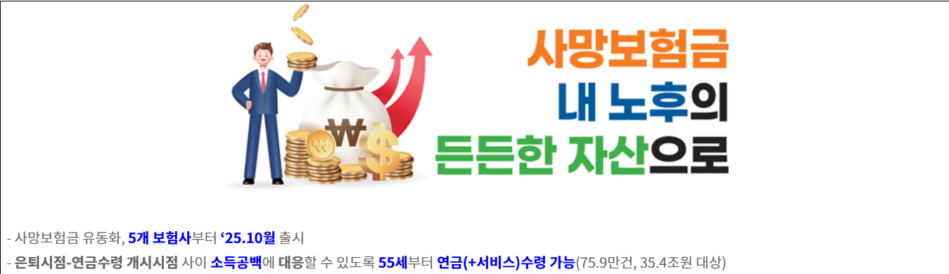 사망보험금 유동화 총정리|2025년 10월 시작·최대 90% 전환·55세부터 연금처럼 받으실 수 있습니다